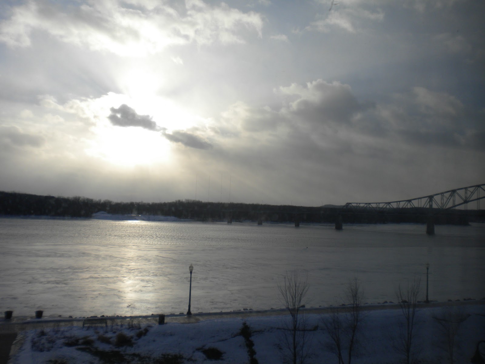 This is my first look at daylight on Saturday, January 1, 2011, taken out the window from Room 433 at the Grand Harbor in Dubuque. I stumbled to the window and opened the curtains, thinking all the while "my head hurts...."